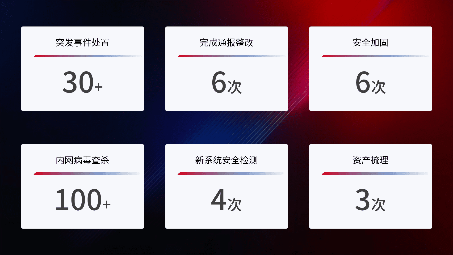 网络安全加固与风险管理:通过技术加固手段,,,,如加强区域隔离,,,缩减攻击内网横向移动的范围;优化现有网络安全管理制度,,,降低网络威胁暴露面,,,减少被黑客攻击的可能性。。
